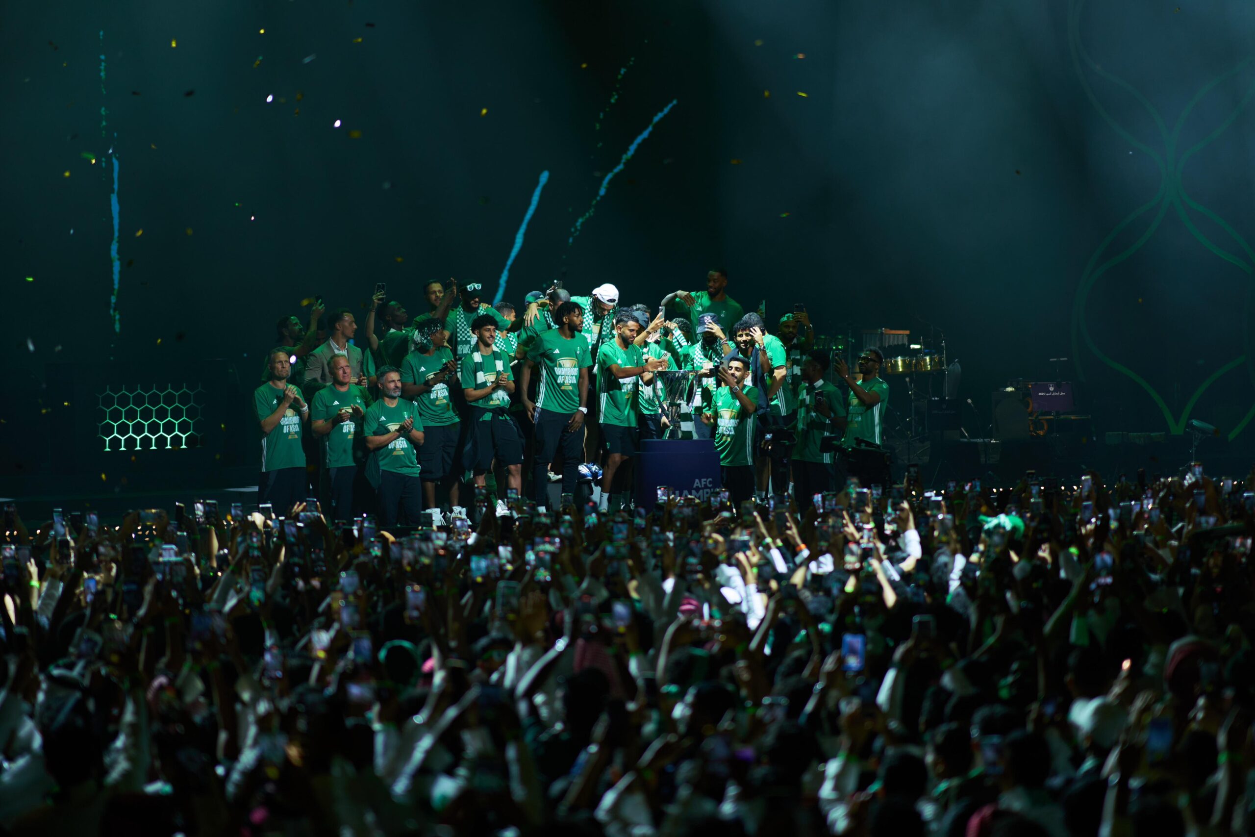وشهد الحفل حضور صاحب السمو الأمير عبدالعزيز بن تركي الفيصل ، وزير الرياضة، إلى جانب شخصيات رياضية وإعلامية بارزة، وأكثر من 30 ألف مشجع من جماهير الأهلي، الذين توافدوا للاحتفال بنجومهم بعد موسم آسيوي استثنائي أعاد “قلعة الكؤوس” إلى صدارة المشهد القاري.