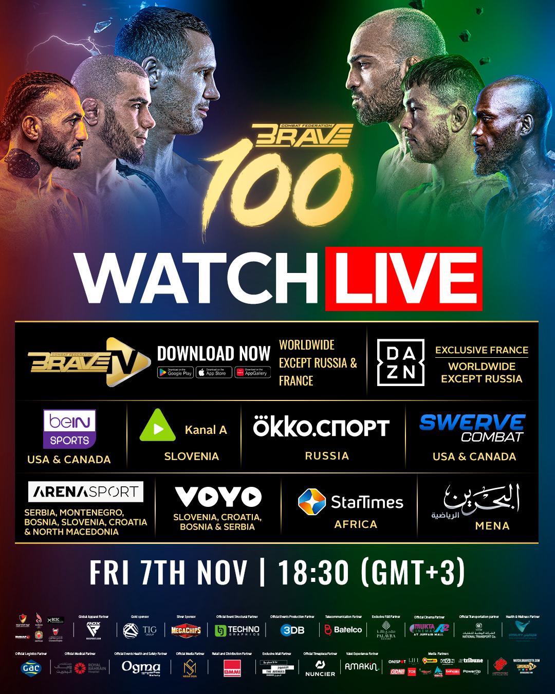 وفي إنجاز عالمي غير مسبوق، أعلنت منظمة بريف عن شبكة واسعة من اتفاقيات البث الدولية تضمن تغطية الحدث في معظم قارات العالم، عبر كبرى القنوات والمنصات الرياضية، من بينها beIN SPORTS في أمريكا الشمالية، DAZN في أوروبا وأميركا اللاتينية، Arena Sports TV في منطقة البلقان، Okko Sports في روسيا، وStarTimes في إفريقيا، إلى جانب Voyo وKanal A في سلوفينيا، ومنصة Swerve Combat في الولايات المتحدة.