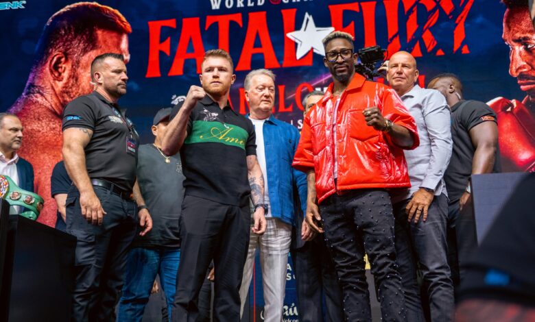 المملكة العربية السعودية، الرياض 1 مايو 2025: شهد المسرحالعالمي في بوليفارد سيتي مساء اليوم (الخميس) انعقاد المؤتمر الصحفيالخاص بجميع الملاكمين المشاركين في ليلة “Fatal Fury” على لقب بطلالعالم بلا منازع في الوزن المتوسط الفائق، والتي تُعد إحدى أبرز فعالياتموسم الرياض لهذا العام.
