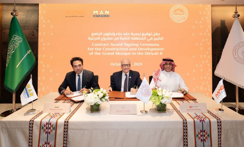 الدرعية، 8 أكتوبر 2025م: أعلنت شركة الدرعية عن توقيع عقد مشروع بقيمة 917 مليون ريال سعودي ما يعادل (244 مليون دولار أمريكي تقريبًا) لتطوير الجامع الكبير في المرحلة الثانية من مشروع الدرعية، وذلك بالتعاون مع مجموعة المجال العربي وشركة مان إنتربرايز السعودية المحدودة، ويُعدُّ الجامع الكبير أحد أكبر مساجد الدرعية، ومعلمًا دينيًا وثقافيًا مميزًا يجسّد الالتزام الراسخ لشركة الدرعية بتطوير أصول حضرية متنوّعة تُعزّز مكانة الدرعية كوجهة حضارية وثقافية متكاملة.