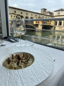 لمزيج من الفخامة والتاريخ العريق، توجه إلى فندق بالازو لوتشيسيا لتناول العشاء. يقع هذا الفندق الساحر في قلب فلورنسا، ويجسد أناقة المدينة، ويوفر أجواءً دافئةً وجذابةً. يشتهر مطعم الفندق، الحائز على نجمة ميشلان، بقائمته الفاخرة التي تُبرز نكهات توسكانا بلمسة عصرية. من الطبق الأول اللذيذ من الفطر البري إلى حلوى الكمأة الفاخرة، يُحضّر كل طبق بعناية وإتقان.