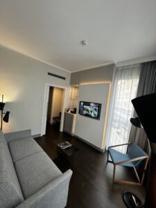 ابدأوا مغامرتكم الرومانية في فندق لو ميريديان، منارة الأناقة والرقي في قلب المدينة. كونه الأول من نوعه في إيطاليا، يُقدّم لو ميريديان تجربةً فنيةً بتصميمٍ خاص في كل طابق، مما يخلق أجواءً فريدةً أثناء صعودكم عبر الفندق. أجنحةٌ ضخمة في الطابق الأخير مع جاكوزي خاص، وإطلالةٍ مميزة، ومنطقة شواء، حيث يُمكنكم دمج غرفتين معًا بخصوصيةٍ تامةٍ للعائلات الكبيرة. كل طابق مُزين بعناصر مميزة تُجسد جوانب مختلفة من روما، ممزوجةً تاريخ المدينة العريق بجمالياتها العصرية.