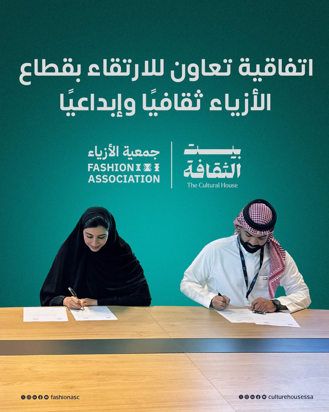 وقّعت جمعية الأزياء اتفاقية تعاون مع بيت الثقافة، إحدى مبادرات وزارة الثقافة، بهدف تعزيز حضور الأزياء ضمن المشهد الثقافي الوطني، وتمكين المصممين والممارسين في مختلف مناطق المملكة.