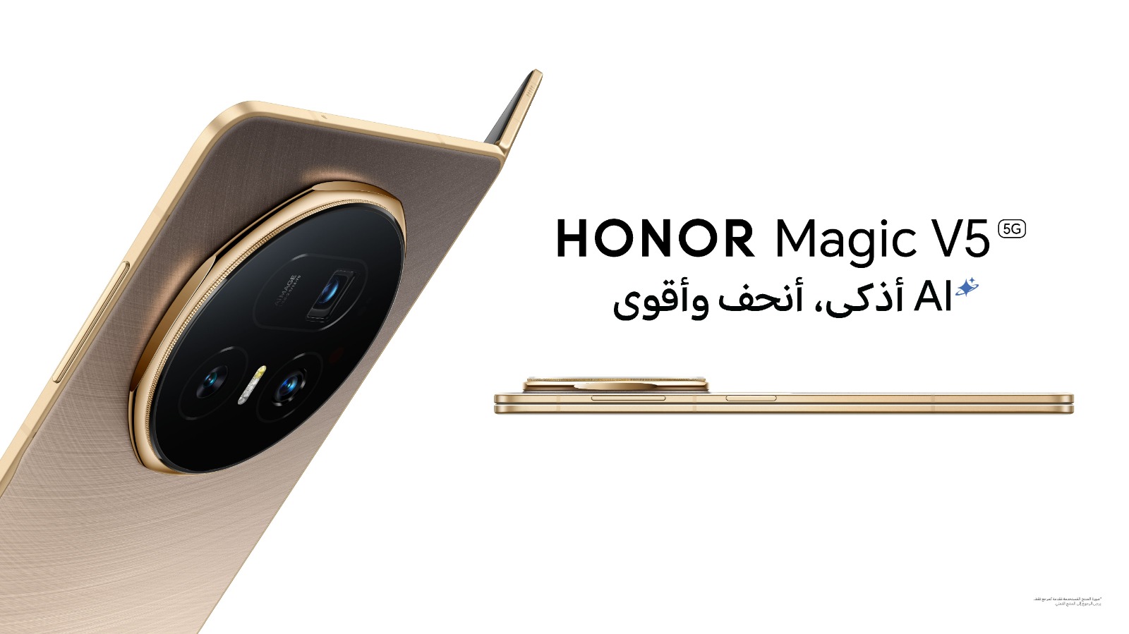 سيتوفر HONOR Magic V5 قريبًا للطلب المسبق بمجموعة من الألوان الأنيقة، بما في ذلك الذهبي الفجري، الأبيض العاجي، البني المحمر، والأسود — وذلك بسعر إطلاق مميز، مع هدايا فاخرة وخدمات VIP ما بعد البيع حصرية.
