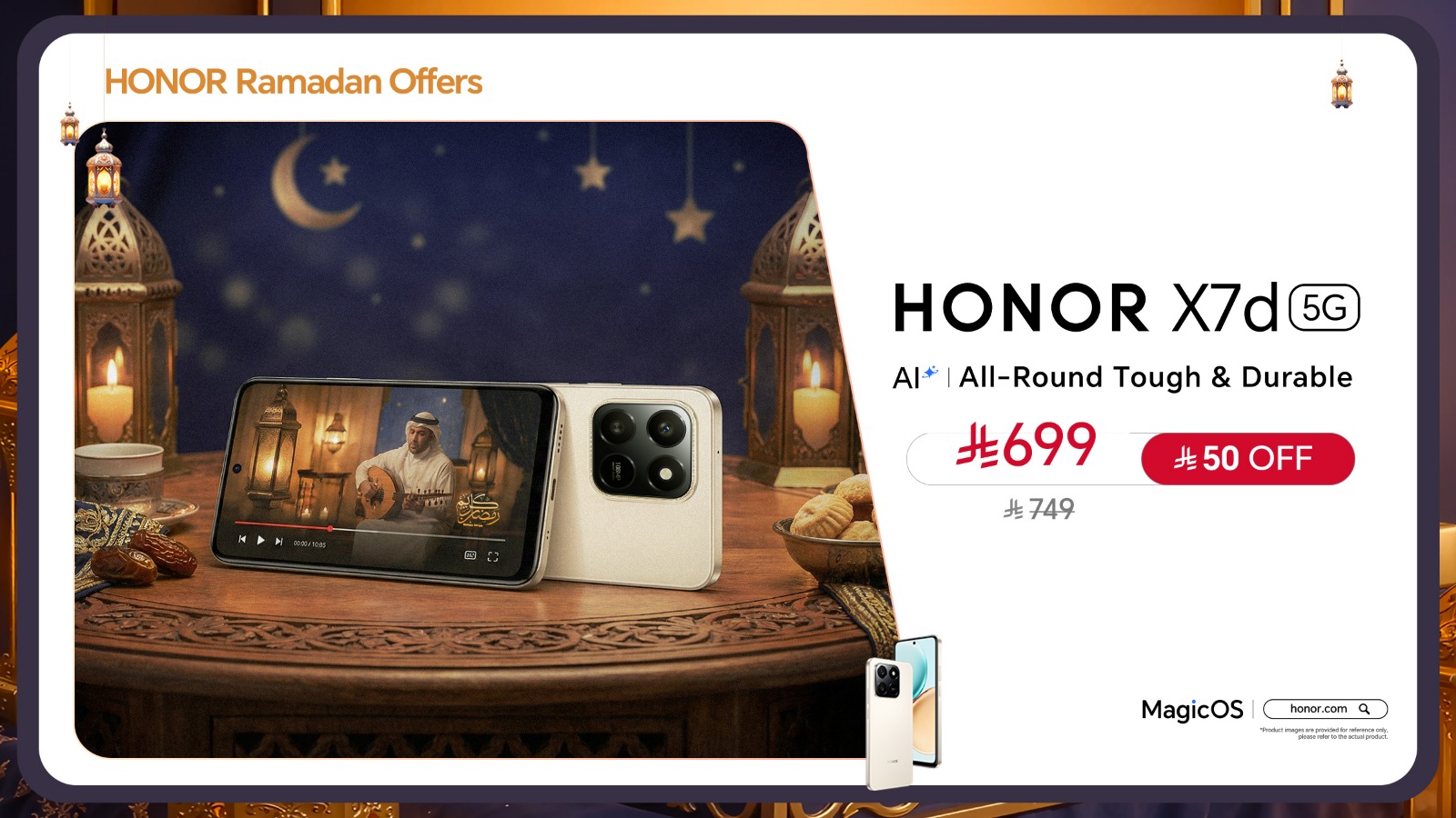 الرياض- المملكة العربية السعودية 12 فبراير 2026: في هذا الموسم الرمضاني، تقدم HONOR، العلامة الرائدة عالمياً في الأجهزة المدعومة بالذكاء الاصطناعي، مجموعة واسعة من عروض رمضان الحصرية على الهواتف الذكية والأجهزة اللوحية والأجهزة القابلة للارتداء وأجهزة الصوت في المملكة العربية السعودية. وتهدف هذه العروض إلى توفير مرونة أكبر وقيمة حقيقية وخيارات أذكى للترقية أو الإهداء، حيث تعتمد حملة HONOR الرمضانية على عروض مرحلية تبدأ بخصومات فورية، تليها خطط تقسيط مرنة بدون فوائد.