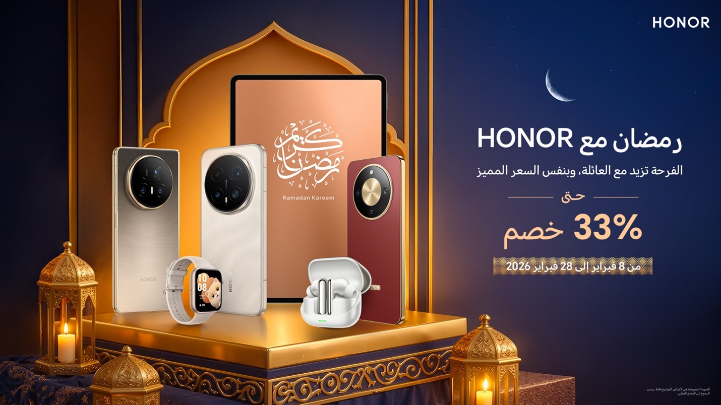الرياض- المملكة العربية السعودية 12 فبراير 2026: في هذا الموسم الرمضاني، تقدم HONOR، العلامة الرائدة عالمياً في الأجهزة المدعومة بالذكاء الاصطناعي، مجموعة واسعة من عروض رمضان الحصرية على الهواتف الذكية والأجهزة اللوحية والأجهزة القابلة للارتداء وأجهزة الصوت في المملكة العربية السعودية. وتهدف هذه العروض إلى توفير مرونة أكبر وقيمة حقيقية وخيارات أذكى للترقية أو الإهداء، حيث تعتمد حملة HONOR الرمضانية على عروض مرحلية تبدأ بخصومات فورية، تليها خطط تقسيط مرنة بدون فوائد.