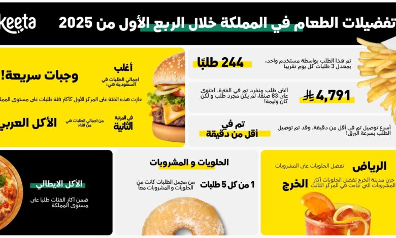 “كيتا” تكشف توجهات توصيل الطعام في السعودية للربع الأول من 2025: الوجبات السريعة تتصدر، والإقبال على الحلويات يرتفع، وسرعة التوصيل تتزايد.