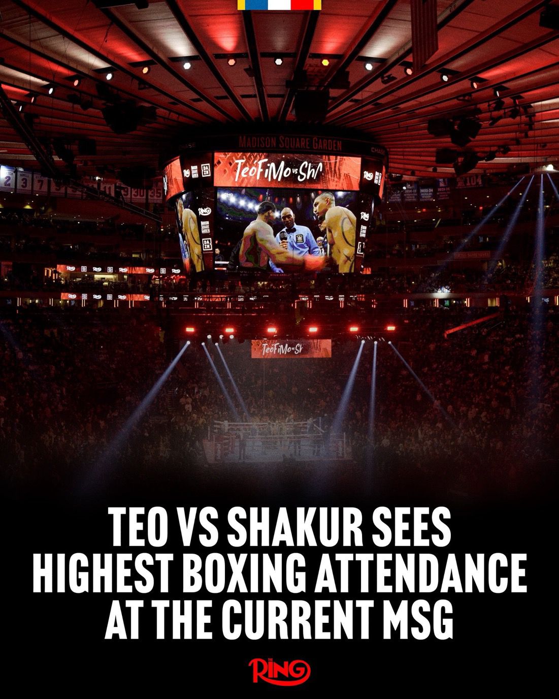 ويُعد هذا الرقم الأعلى على الإطلاق بين جميع نزالات الملاكمة التي استضافتها القاعة خلال أكثر من خمسة عقود، في إنجاز استثنائي يعكس الزخم الكبير الذي رافق هذه النسخة، ويسهم في ترسيخ حضور الملاكمة كرياضة جماهيرية قادرة على تحطيم الأرقام القياسية وصناعة لحظات خالدة في ذاكرة الرياضة العالمية.