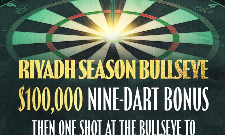 وسيحصل اللاعب الذي ينجح في تسجيل رمية تسع سهام خلالمنافسات بطولة ماسترز السعودية للسهام على جائزة بقيمة 100 ألف دولار، مع فرصة مضاعفة الجائزة إلى 200 ألف دولار عبرتحدي Riyadh Season Bullseye، حيث يُمنح اللاعب سهمًاواحدًا للتصويب على مركز الهدف، في جائزة تُعد الأكبر من نوعهافي تاريخ رابطة PDC .