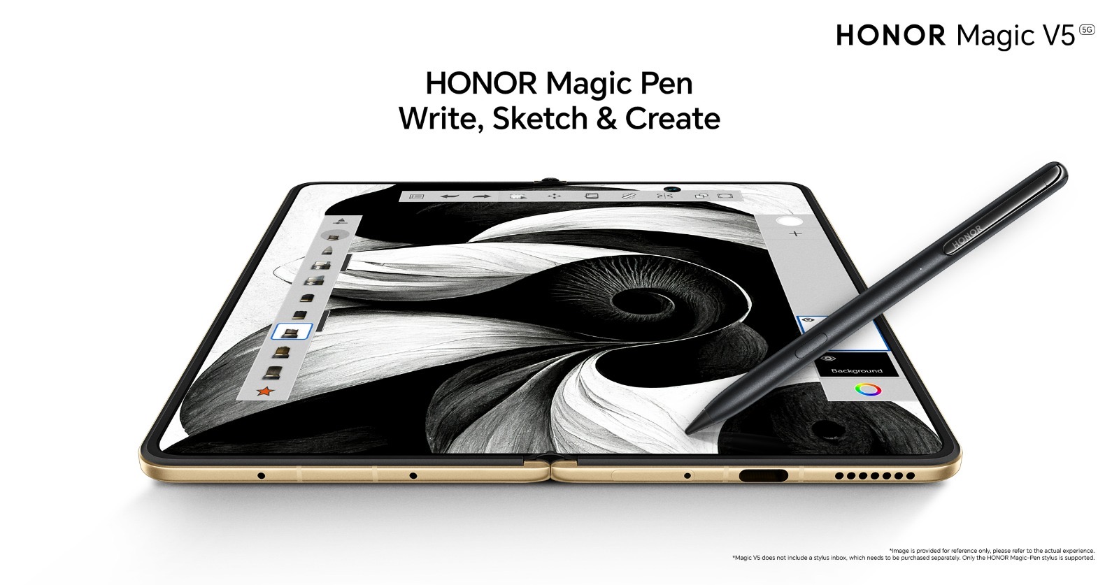 بالإضافة إلى ذلك، يدعم HONOR Magic V5 قلم HONOR Magic-Pen على كل من الشاشة الداخلية والخارجية، مما يتيح الكتابة والرسم والتعليق بسلاسة، ويُعزز بشكل كبير من الدقة، خاصة في مهام تحرير النصوص.