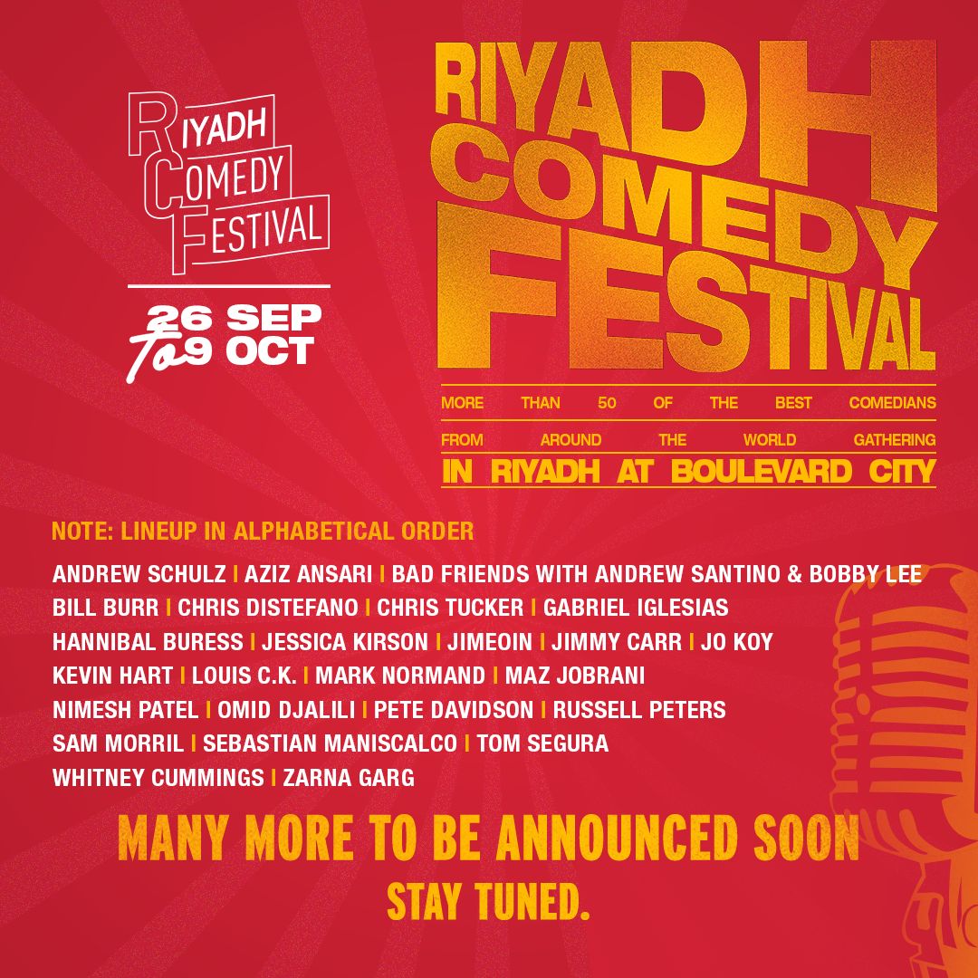 ويُعد هذا المهرجان الأضخم عالميًا في مجال الكوميديا، حيث يجمع أكثر من 50 من ألمع نجوم الكوميديا من مختلف أنحاء العالم لتقديم عروض استثنائية تضيف إلى رصيد الرياض كواحدة من أهم الوجهات للترفيه العالمي.