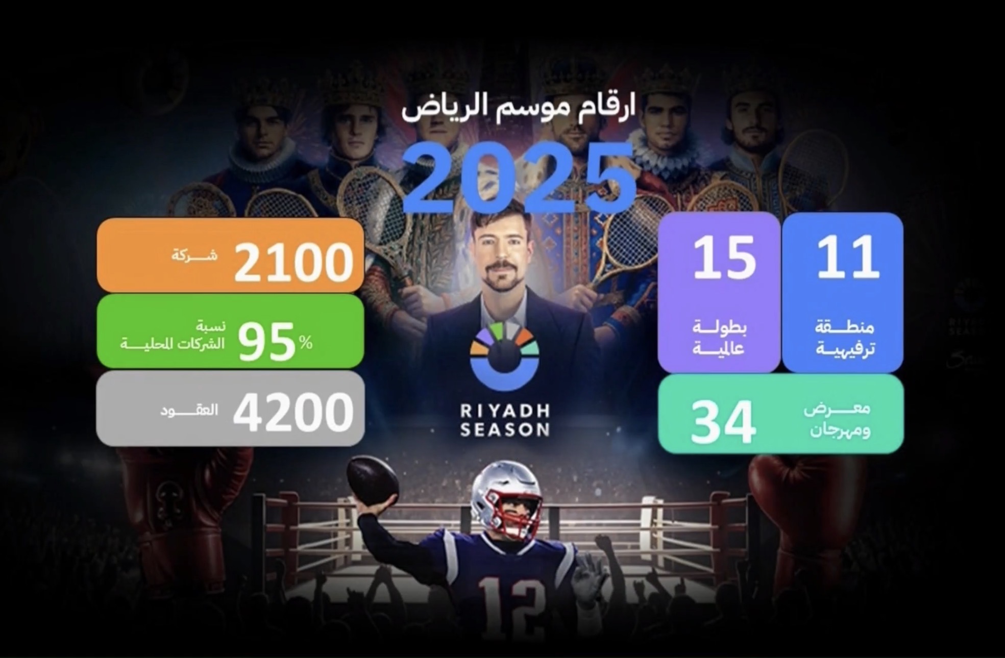كما يضم الموسم مجموعة واسعة من الفعاليات الكبرى التي تشمل العروض الموسيقية والمسرحية والبطولات الرياضية العالمية، من بينها بطولات الملاكمة العالمية، وفعاليات WWE، وبطولة الغولف LIV، إضافة إلى فعاليات Joy Awards التي تحتفي بصنّاع الترفيه في العالم العربي.