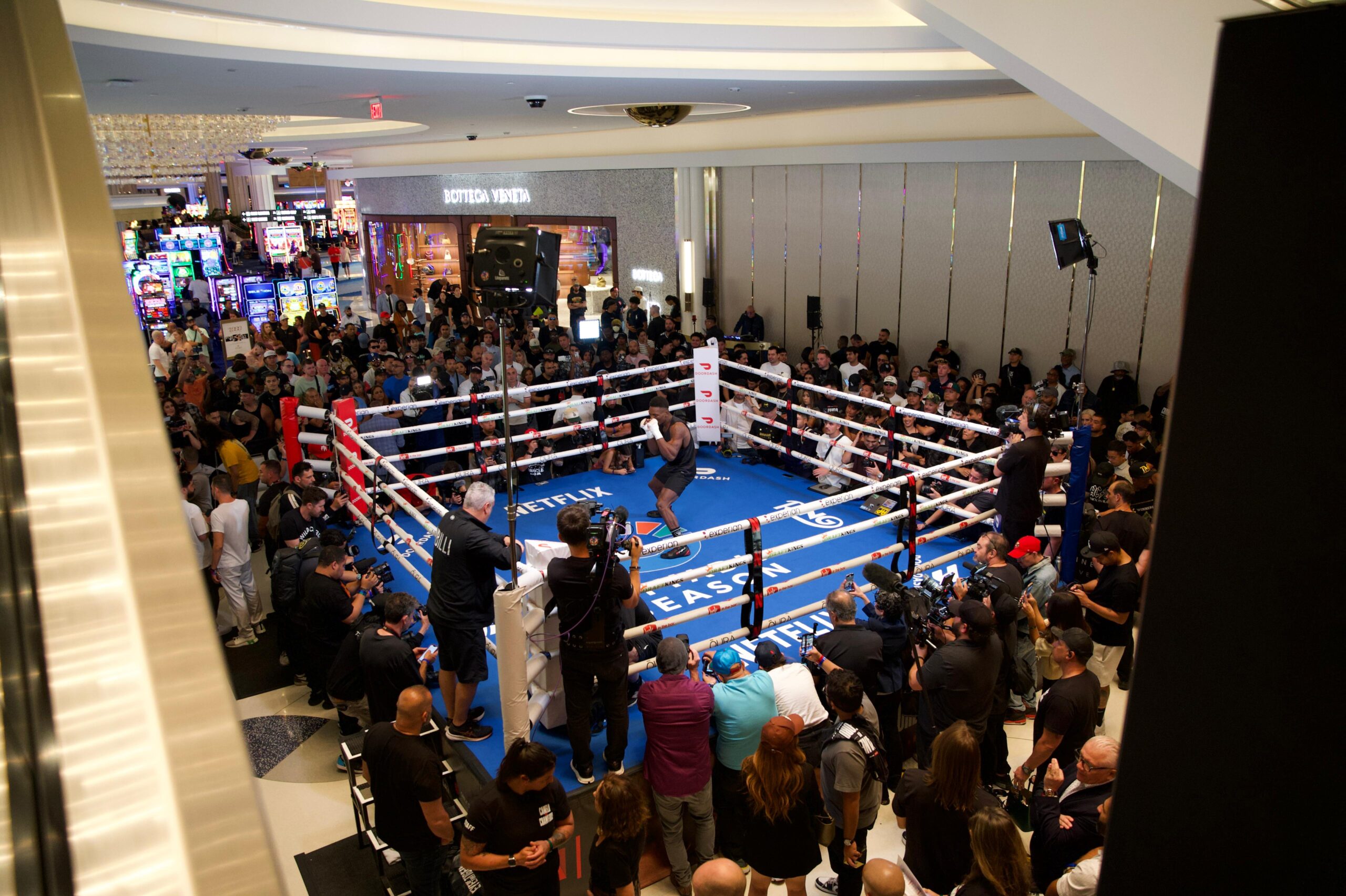 إلى ذلك، أقيمت فعالية التدريبات المفتوحة (Public Workout)، حيث وقف الجمهور وجهاً لوجه مع الملاكمين في النزال الكبير، بمشهد مليء بالحماس المتصاعد مع اقتراب ليلة السبت التاريخية. وحظيت التدريبات بمتابعة إعلامية وجماهيرية واسعة، لتؤكد مرة أخرى ضخامة الحدث وأثره في عالم الملاكمة الحديثة.