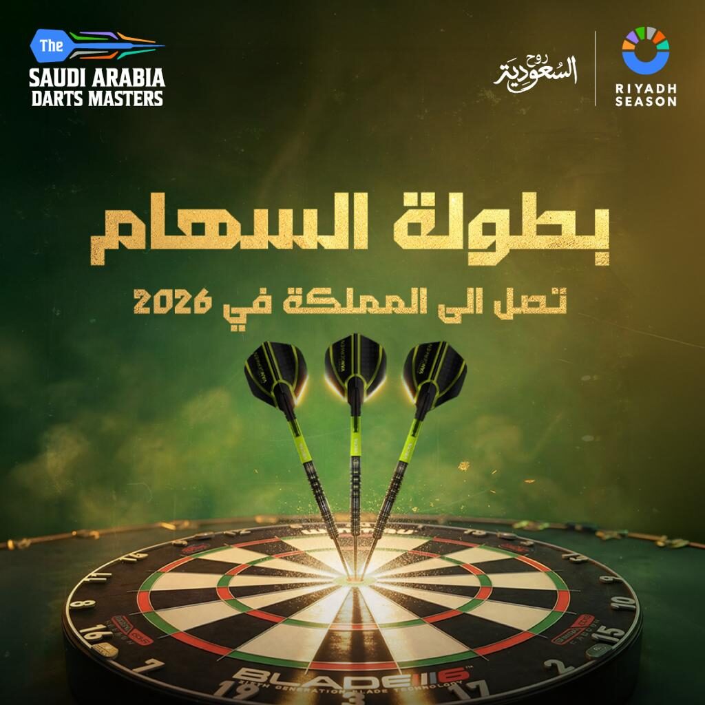 المملكة العربية السعودية، الرياض، 1 يناير 2026: أعلن معالي المستشار تركي بن عبدالمحسن آل الشيخ، رئيس مجلس إدارة الهيئة العامة للترفيه (GEA)، عن طرح تذاكر بطولة ماسترز السعودية للسهام 2026، التي تنطلق في 19 يناير 2026 ، بمشاركة نخبة من أبرز نجوم اللعبة على مستوى العالم، من بينهم الهولندي مايكل فان جيروين، والانجليزيين ستيفن بونتينج، و لوك همفريز، و لوك ليتلر، والويلزي جيروين برايس.