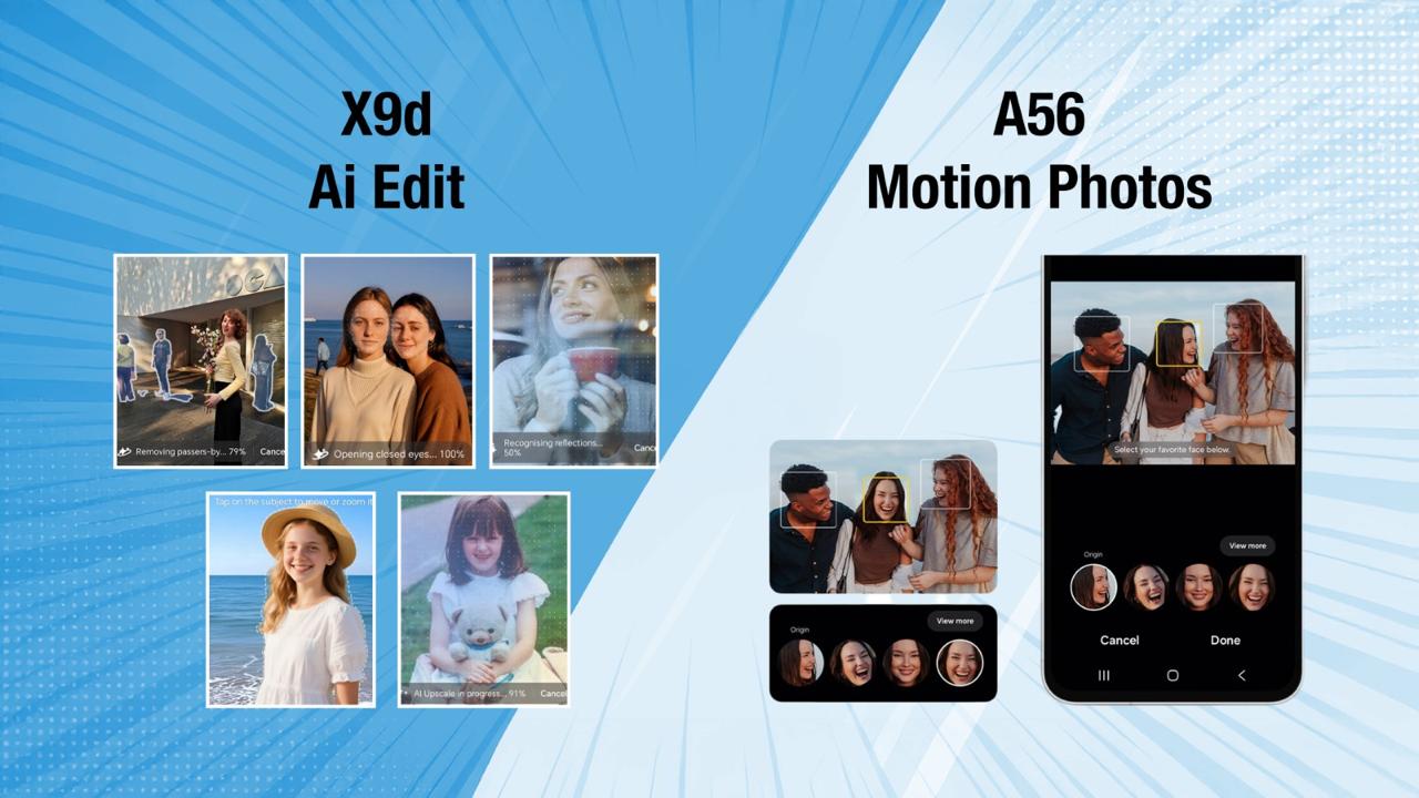 أما Galaxy A56 فيعتمد نظاماً ثلاثي العدسات (50 + 12 + 5 ميغابكسل) يوازن الألوان ويعزز النقاء بفضل معالجة .Super HDR وتضيف ميزات مثل Circle to Search إمكانية البحث عن العناصر داخل الصور بسهولة، بينما تلتقط ميزة Motion Photos أفضل تعبير في الصور الجماعية. إنها تجربة تصوير بسيطة وسهلة، تضع الأدوات بين يدي المستخدم وتترك له اللمسة الأخيرة.