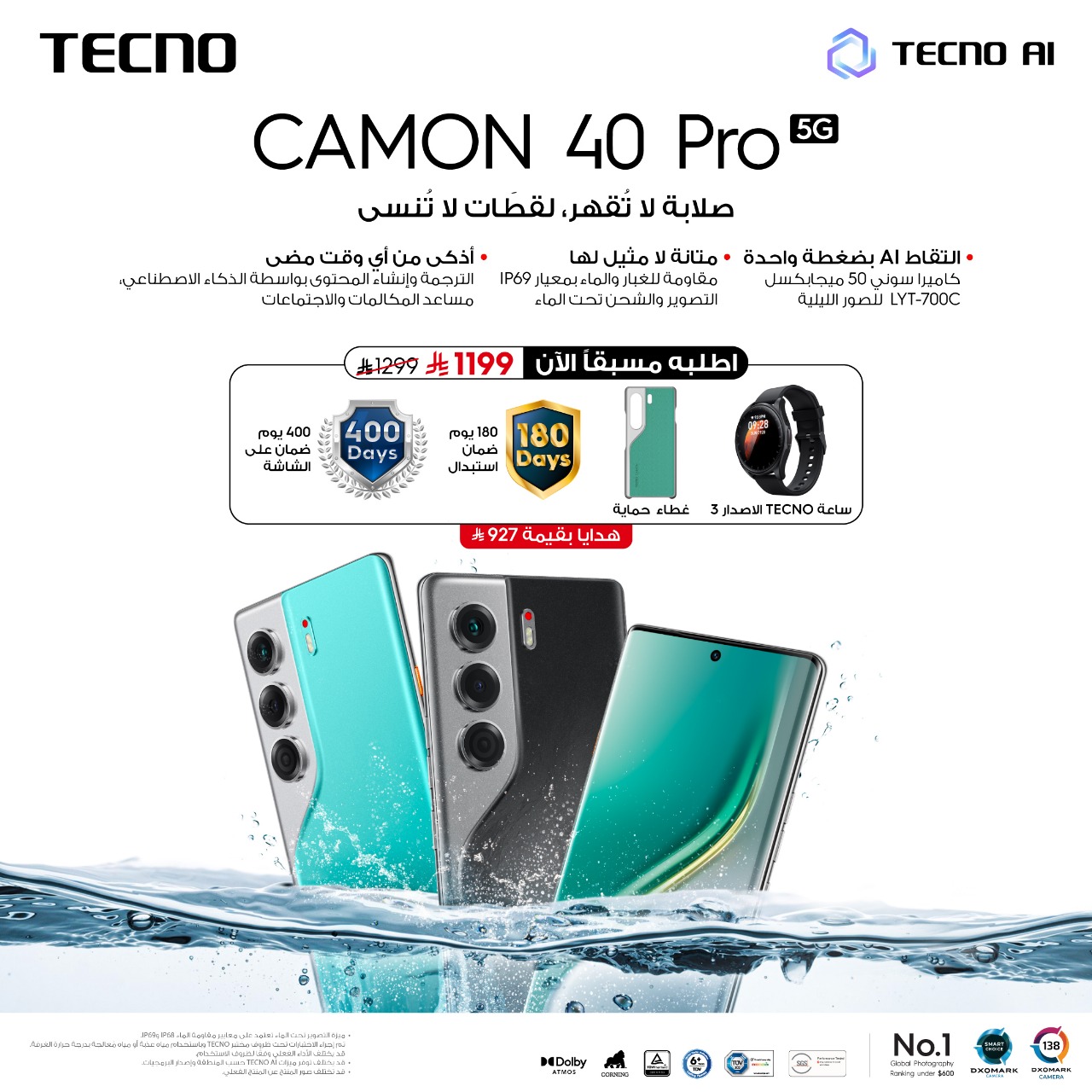ابتداءً من اليوم 22 ابريل وحتى 28 أبريل، تفتح TECNO الباب أمام تجربة ذكية غير مسبوقة مع بدء الحجز المسبق لهاتفCAMON 40 Pro 5G، الهاتف الذي يُعيد تعريف قدرات الهواتف الذكية في الفئة المتوسطة. يجمع هذا الجهاز بين الذكاء الاصطناعي المتطور، المتانة الخارقة، افضل تجربة تصوير في العالم تحت سعر 600 دولار، وأداء يدوم لسنوات… وكل ذلك بسعر لا يُضاهى مع باقة من الهدايا الحصرية.