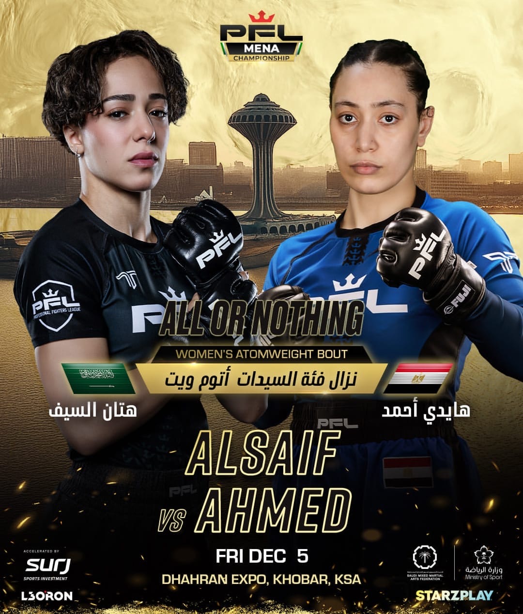 وتواجه السيف في هذا النزال المرتقب المقاتلة المصرية هايدي أحمد، في مواجهة تحمل طابعاً خاصاً كونها أول ظهور رسمي لها على المستوى الاحترافي بعد مسيرة ناجحة في منافسات الهواة.